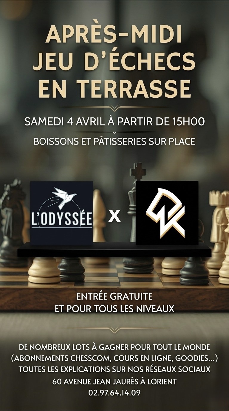 APRES-MIDI JEU D’ECHECS TOUS NIVEAUX SAMEDI 4 AVRIL A PARTIR DE 15H00 A L’ODYSSEE