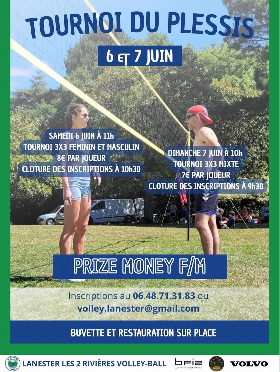 Le club Lanester Les 2 Rivières Volley-Ball organise son traditionnel « Tournoi du Plessis » le week-end du 6 et 7 juin.