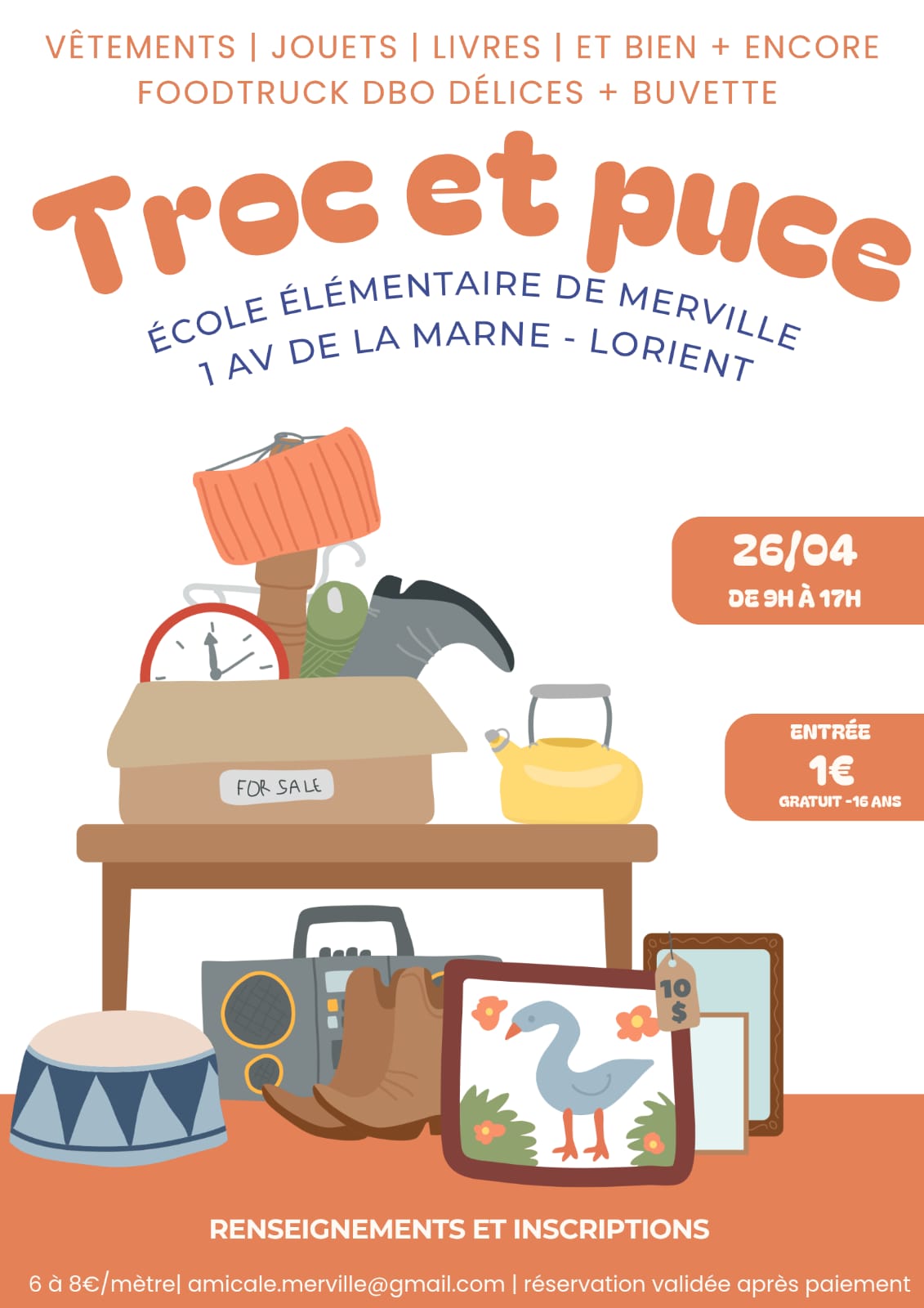 L’Amicale de Merville organise un Troc et Puces le dimanche 26 avril 2026 au sein de l’école, en intérieur et extérieur