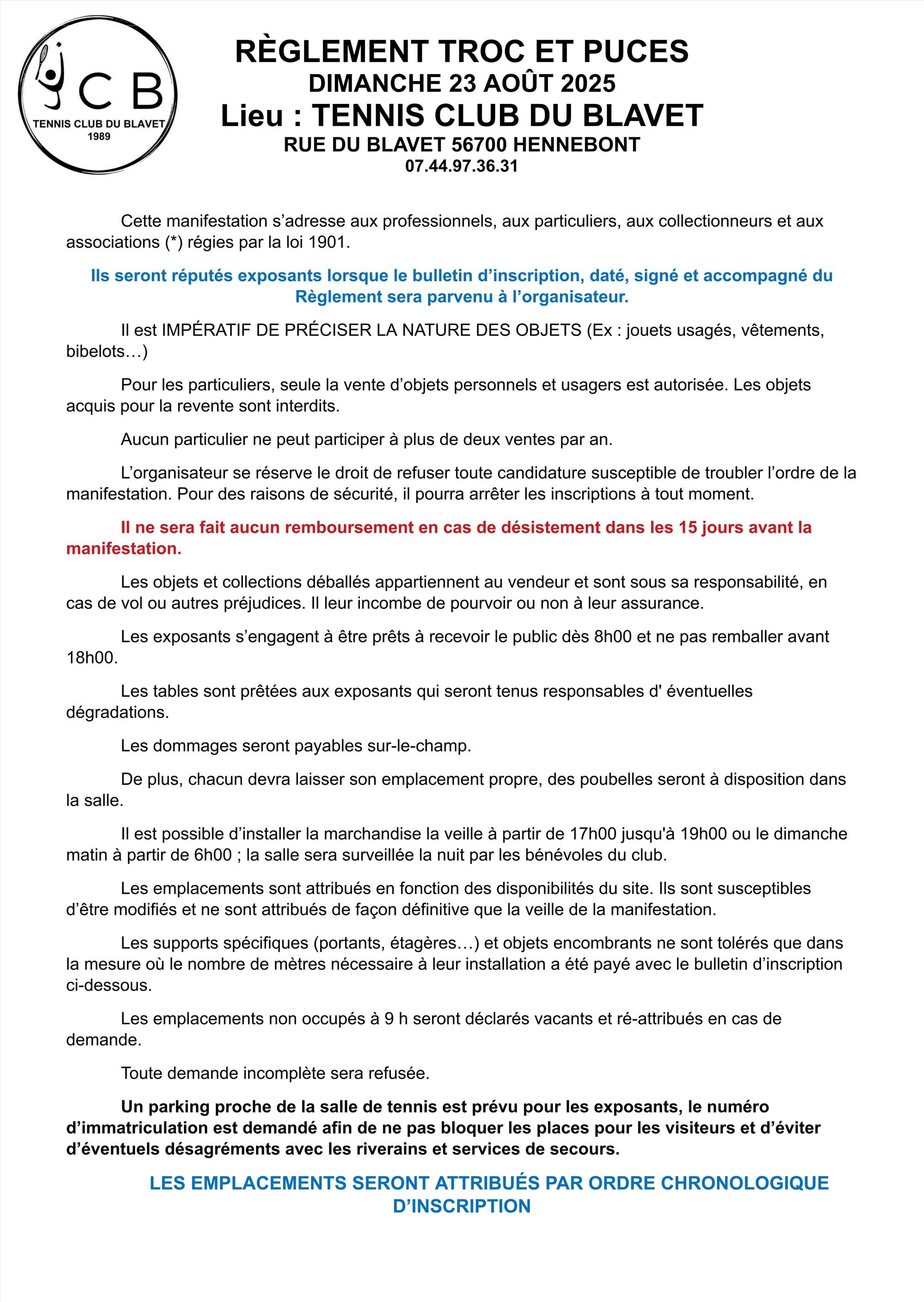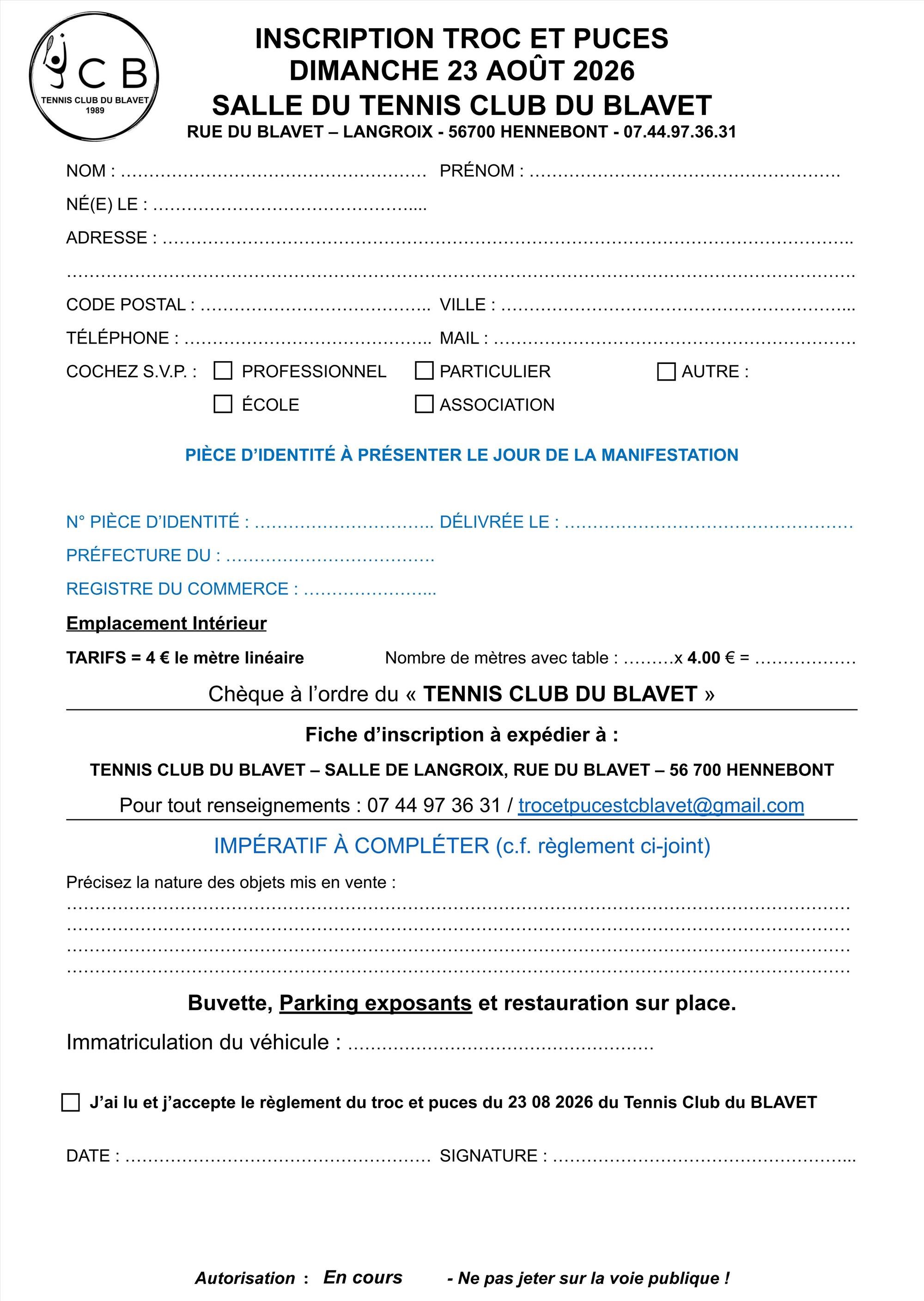 Troc et puces du tennis-club du Blavet